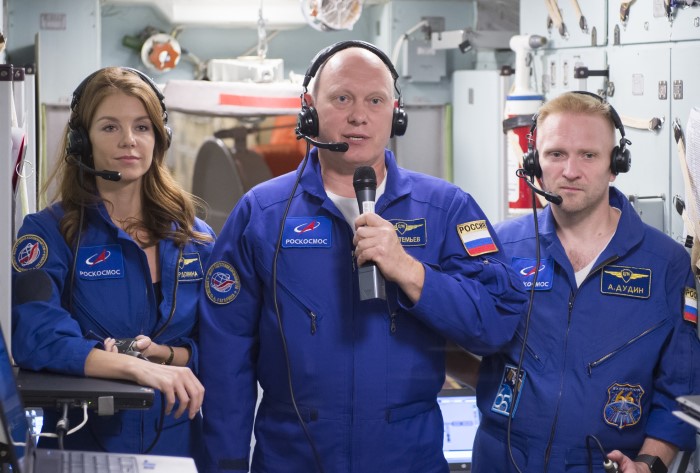 Crew: Yulia Peresild, Anton Shkaplerov, Klim Shipenko.