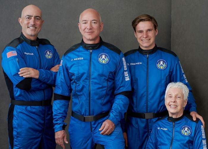 Экипаж New Shepard: Марк Безос, Джефф Безос, Оливер Деймен, Уолли Фанк.