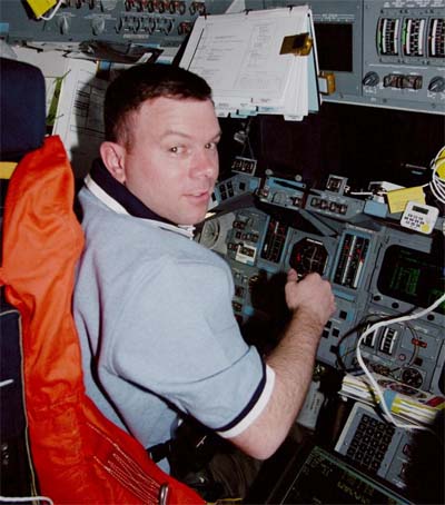 James Kelly on the flight deck of the Space Shuttle Discovery.